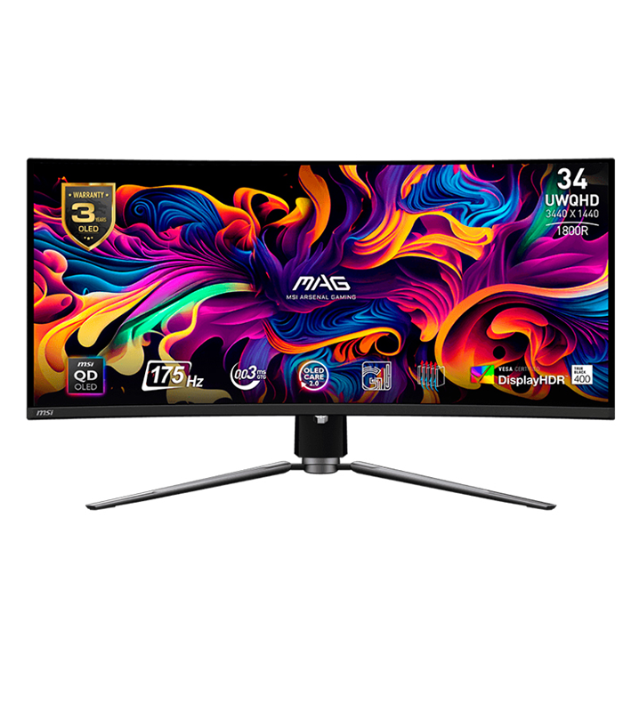 Monitor curvo gaming MSI MAG 341CQP QD-OLED 34″/QD-OLED/1800R/175Hz/HDMI x2/DP x1/USB-C x1